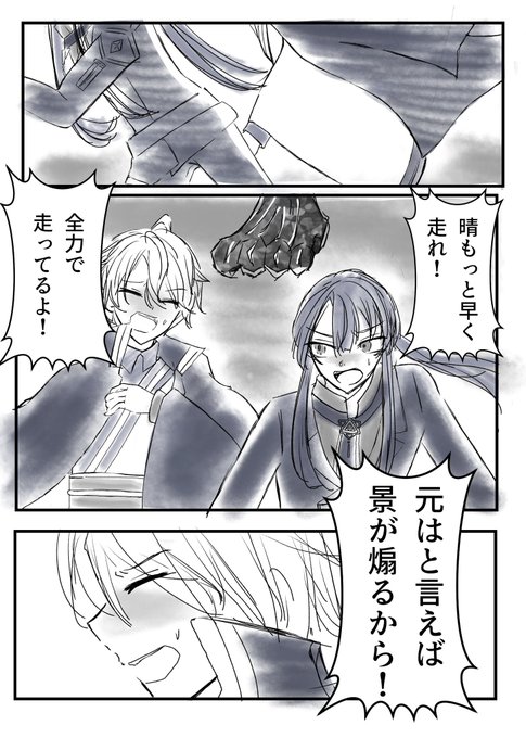 これは私が見たかっただけの幻覚(の力尽きたやつ) 体力ない🌞を道から押し出して囮になる☯️ 描き殴っただけだから色々間違えてる