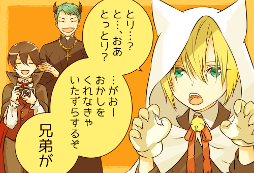しょたんばハロウィンhttps://t.co/gNIpdblNtAの続き的落書き。画像のURLの後ろに:origって付けると原寸で見れます。
