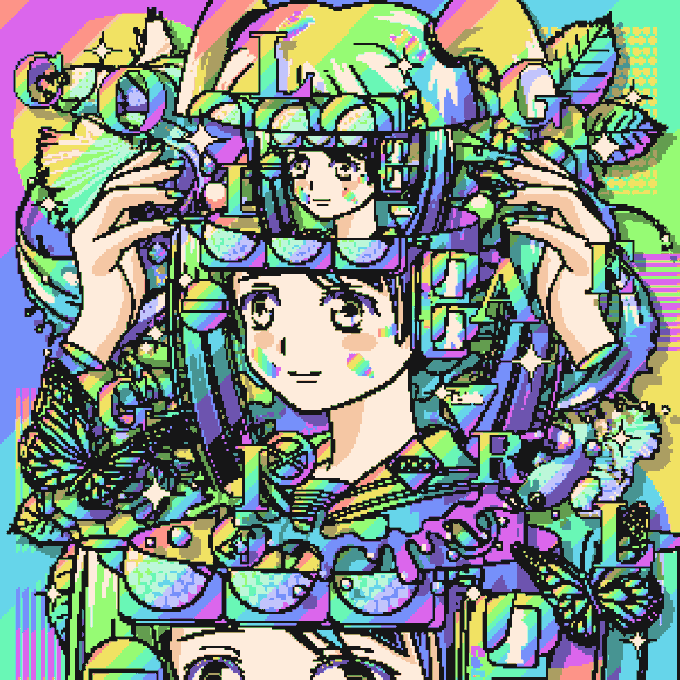 Collage girls clad in bold expressions and various items. With the Japanese culture of high school girls and anime illustrations, we are sending them out to the world.