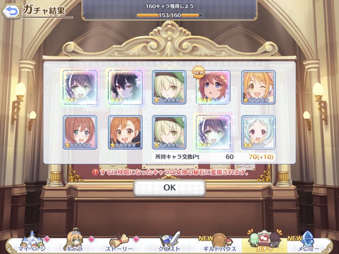 今日の無料10連ちょっとびっくりなんだわこれ… フェスで反動出そうで怖いな #プリコネR
