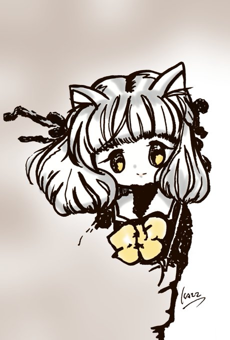 『こん描き』。女の子でモノクロ+なものはこんな感じになりました。