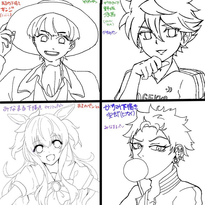 今日も絵チャを しました!下書き→ペン入れ→色塗りを4人で交換しました 私は野坂下書き→キンジペン入れ→マヤノトップガン色塗りです