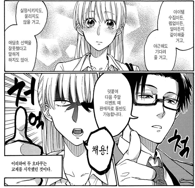 애초에 두 사람의 관계의 시작이 오타쿠인걸 숨기지 않아도 된다인데(영화도 전반부는 같다) 영화는 스토리 전개를 위해서 후지타카를 일반인(??)으로 끌어 내리고 시작한다…..