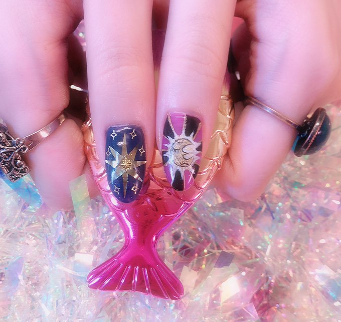 スピカさんnewネイル💖 スピカさん自身の創作イラストをネイルにデザインさせて頂きました✨ 元のイラストが本当に素敵だったのでネイルも素敵に仕上がりました💖 気に入っていただけてよかったです💖 ありがとうございます✨ #気高いネイル