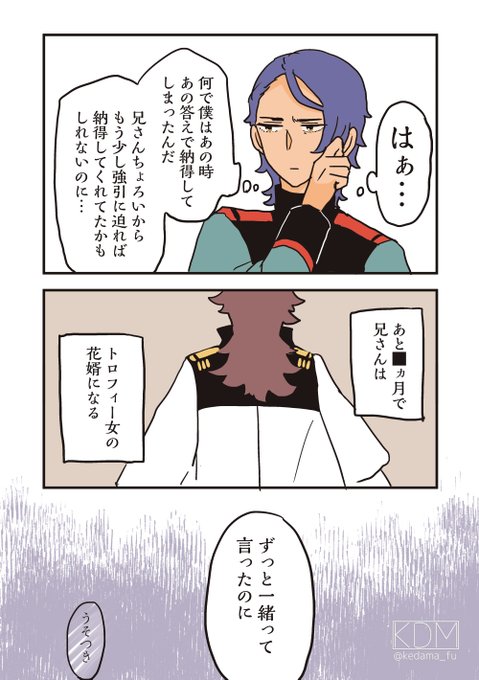 グエルくんの髪切ったのミオミオだったりしない…? 「あんた髪、だいぶ傷んでるわね」 「……いろいろあってな……」 「ふーん、そう」 みたいな会話してほしい