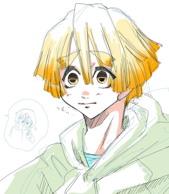 お狐善逸くん (昨日の下描きで水彩練習その③)