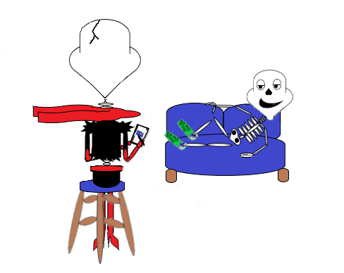 @NanennaXXXVII That would totally be Sans. Red is the guy at beach wearing head to toe leather, sitting under the umbrella next to the cooler, drinking & glaring at anyone who kicks sand on their towel.