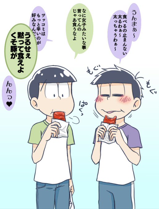 ジャージの一松・チョロ松。 何故かガラ悪くなる。チンピラかな
