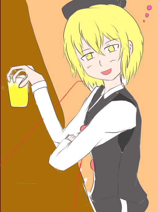 @prism673LMLL 私も遠近法とか、そういうのは理解できてるわけじゃないから 完璧は無理だが…多分こんな感じか…?(赤線がバーのテーブル) まだしっくりこないな……