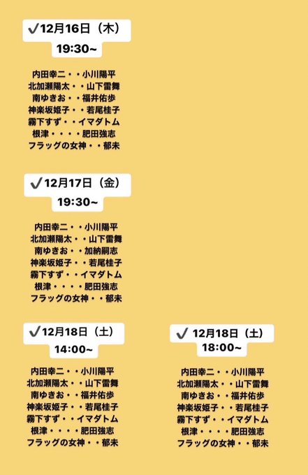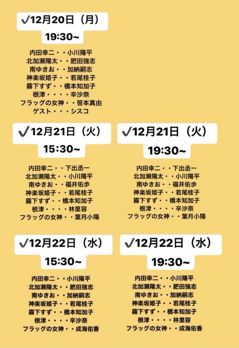 若尾🎟(12/15 19:30は出演なし)