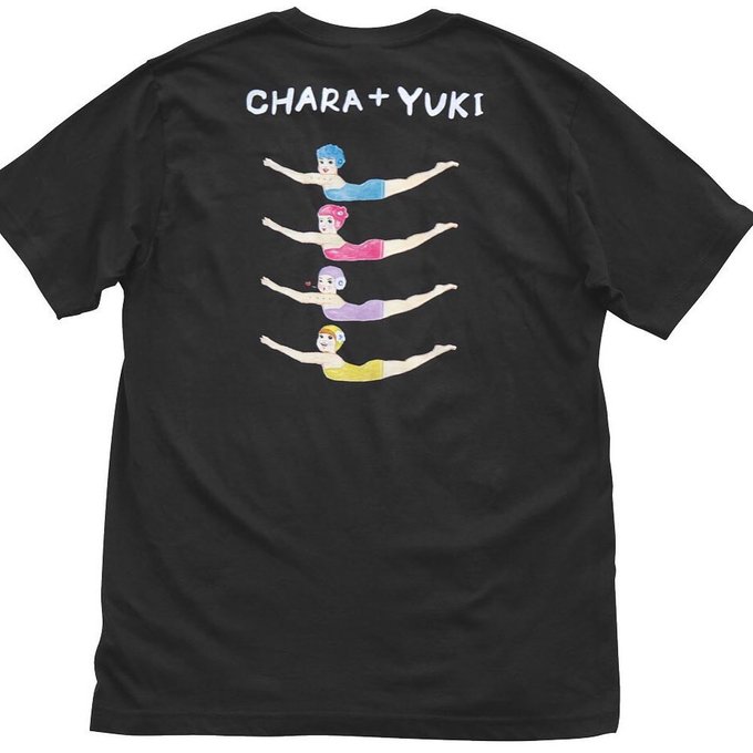 お知らせ遅くなりましたが、Chara+YUKI グッズ。シングル『楽しい蹴伸び』に合わせ、前に向かって蹴伸びるお二人を描きました。