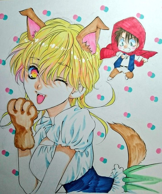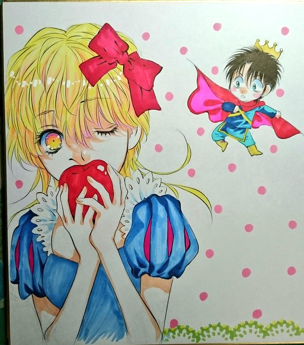 明日明後日のスパコミにて頒布する直筆色紙できました!赤ずきんと白雪姫のテーマです!先着順ですのでお声かけくださいませ❗