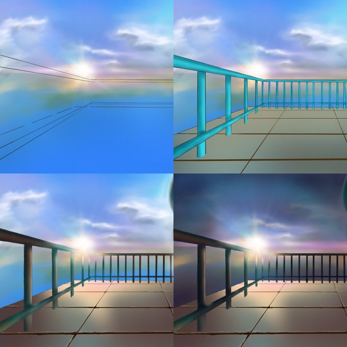 日の出のイラスト、メイキング後半です