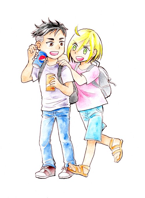 久々にオタユリ!オタユリ描くと元気出る!冷たいジュース缶ピトッ💝 最近少しハマってる水彩色鉛筆…デニム部分は水彩はいい味出る感じがする…と思ってみたり💦