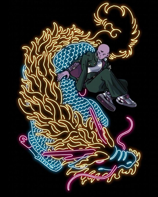 日本の美的感覚の集大成と言うべき #miki さんのイラスト。浮世絵を彷彿とさせる平面的な様式美、伝統的な色彩や絵柄をベースに、アニメ・ギャル文化といった歴代のサブカルチャーが作品に奥行きを与えている。これぞジャパニーズアート。世界に自信をもって誇れる作品だ。