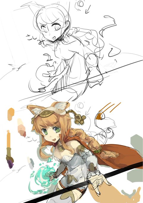 手法変えラフから線画いい感じ #イラスト #ラフ