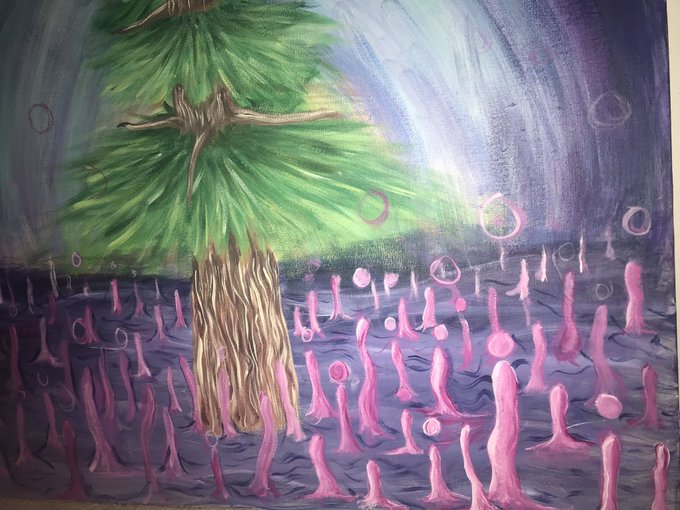 The vision behind this is souls being released from the ground and turning into stars with help from the giant DNA tree 🌲 🧬