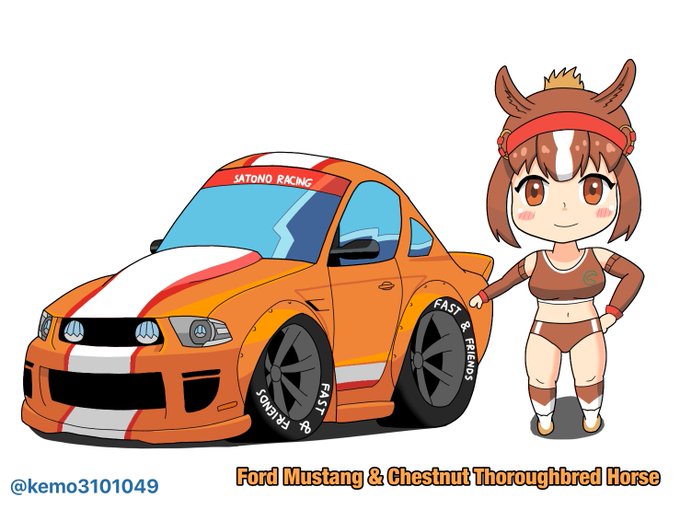 合作「けもQ合同」で描いたサラブレッドくりげちゃん仕様のマスタングをGT7で再現してみました! 同じ型じゃないですがそこはお許しを()