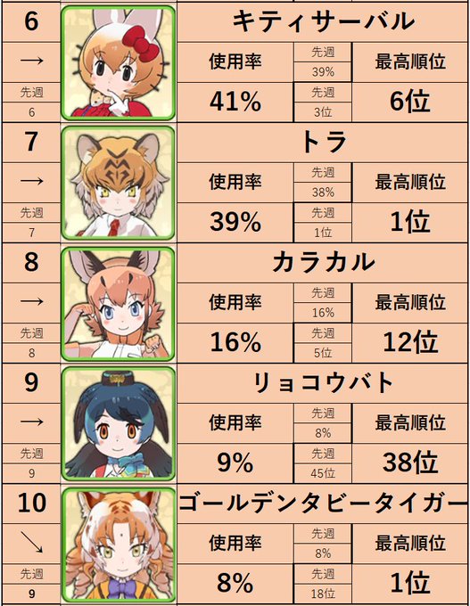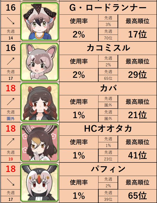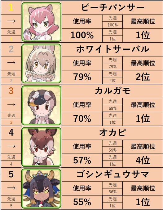 シーサーバル道場β2-12火曜第四週 各フレンズ使用率ランキング #けもフレ3 #シーサーバル道場