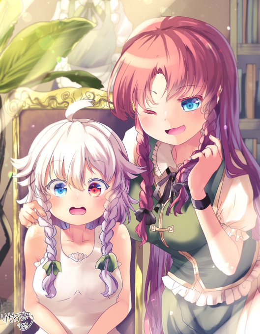 診断メーカーさんのお題、美鈴ちゃんと咲夜さん(ちゃん)。2人一緒に描きたかった…。