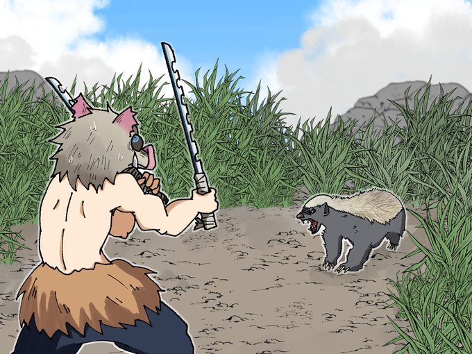 ミツアナグマ が しょうぶを しかけてきた! #鬼滅の刃 #嘴平伊之助 #伊之助 #ミツアナグマ https://t.co/0RJuJ9L9Fg