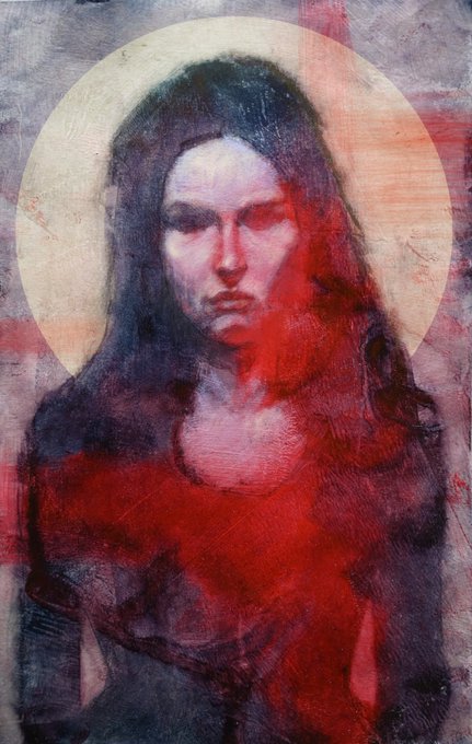 Moving towards minting my first NFT I'm wondering, should I making work here that's different from my IRL paintings? This is a WIP taking a study I did for my Hand Maid's Tale illustrations and reworking it digitally. Perhaps a direction I should think about? 1/3