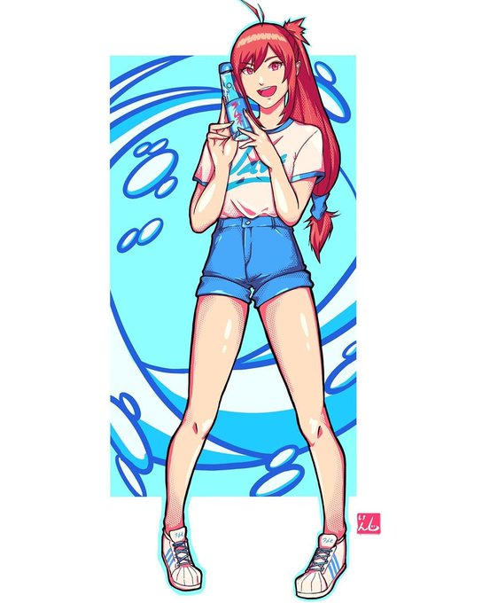 Muitas fotos de ramune e pocari foram jogadas na minha cara, então fiz uma ilustra da minha menina com o refrigerante da bolinha