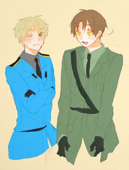 #APHコンビ版深夜のお絵描き60分一本勝負 天使組で【軍服】 Change!
