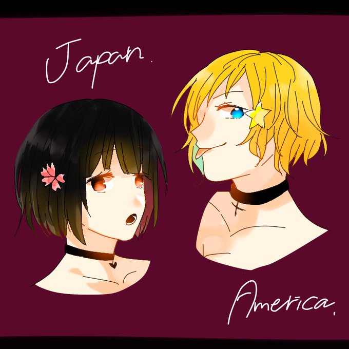 #APHコンビ版深夜のお絵描き60分一本勝負 デコボコ娘コンビで【チョーカー】 チョーカーってチョーカーよね?チョーカー(???)
