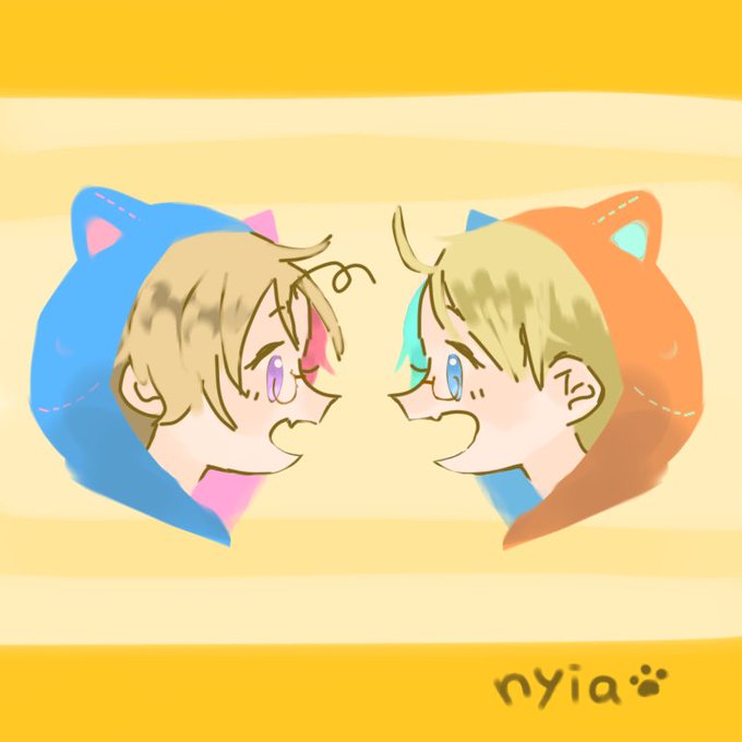 #APHコンビ版深夜のお絵描き60分一本勝負 北米兄弟で【ねこみみパーカー】 タグ間違えてた泣ける