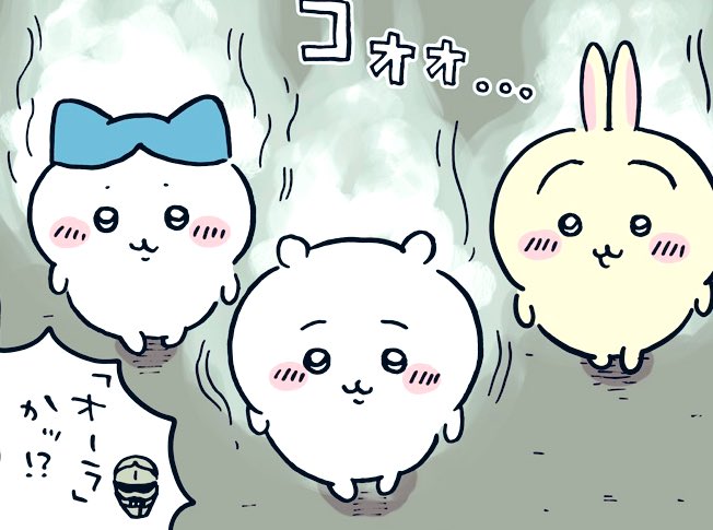 新しいちいかわスタンプの うさぎっちのシックスパックかっこ良すぎる♪ さすが、草むしり3級のちゃんうさッ‼︎ みかんの影にちいかぶ発見ッ♪