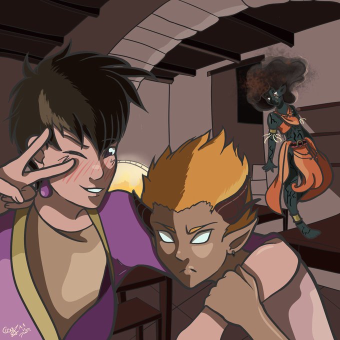 Je suis auteur d'un livre en cours de parution sur tapas (https://t.co/2rNc30H7Bu) et je fais aussi quelques illustrations so ça me fait toujours plaisir d'échanger sur mon univers ;3