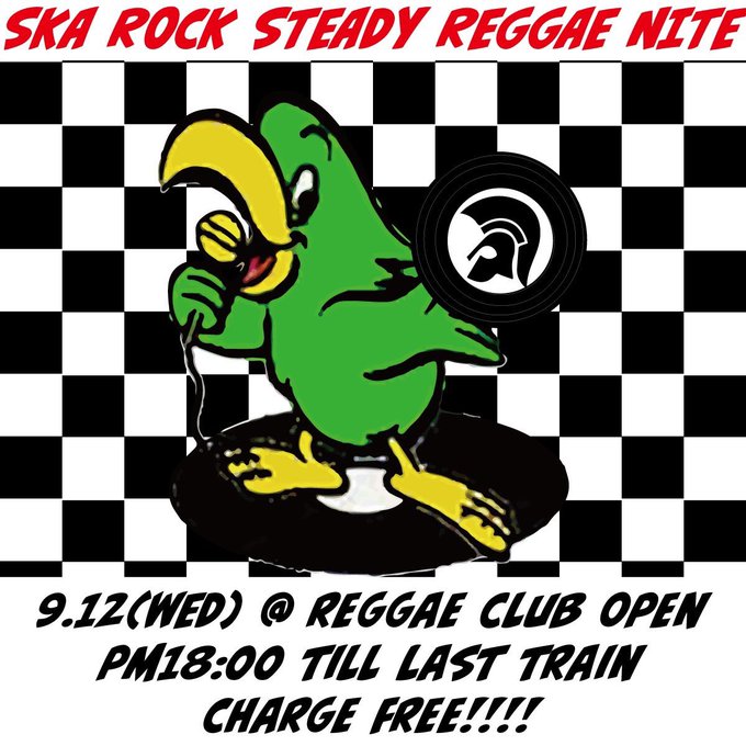 9がつ12にち 水曜日 新宿にてSKA ROCKSTEADY REGGAE NITEにてDJ仕ります。チャージフリー。