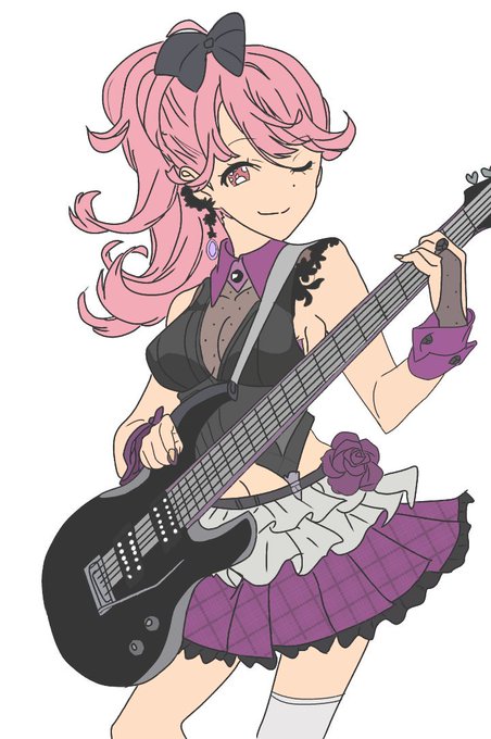 @jeisondiihu 分かりやすくする為に元の絵も貼りますね。こんな感じで描いてるんですよー。ユメノのギターは上手く塗れなかったしサヲリちゃんのスカートにいたっては3色程でグラデーションっぽいのに無理って思って一番多い色っぽいピンク1色で塗りつぶしたんですよね…色々ダメダメ…