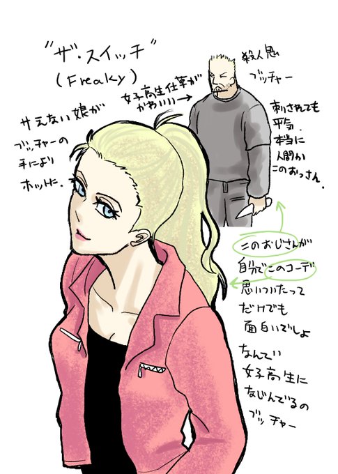 今日見たホラー映画“ザ・スイッチ”のストーリーには触れないけど楽しかったところ ブッチャーの乙女仕草 この監督さんの作った“ハッピー・デス・デイ”も明るいホラーで大好き