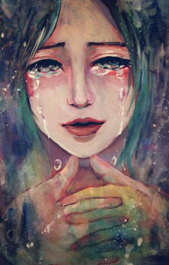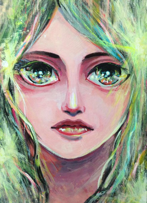 木の板にジェッソ塗って描いてた。自分の絵泣いてる絵多いな