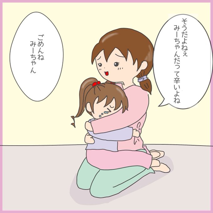 前回の続きになります😃 いつも自分の気持ちを言わないみーちゃんが「辛い」と訴えて来た時には、心がえぐられるぐらい痛かったです😭日々反省の毎日です、ホントに、、😭(1/3) #育児マンガ #育児絵日記 #子育て漫画 #3歳児 #5歳児 #2人姉妹 #姉妹ゲンカ #イヤイヤ期 #反省 #お絵描き
