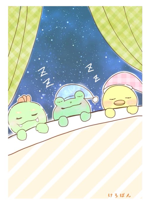 good night…✴︎🌙.°🦕🐸🐤 #絵描きさんと繫がりたい #かえる #ひよこ #イラスト #秋の創作クラスタフォロー祭り