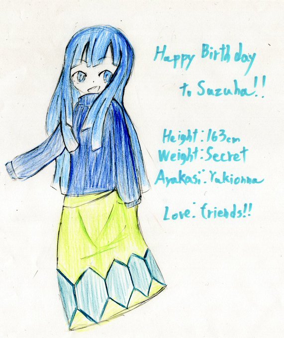 #千アヤ #アナログ絵 本日1/8はうちの子、涼葉の誕生日! うちの子の誕生日イラストは初だけど、取り敢えずお祝いメッセージとプロフィも書いときました。 『ふっふっふー、私も一つ大人になったんだよー!えっへん! 今年は皆から子供っぽいとか言われないように頑張るね!』