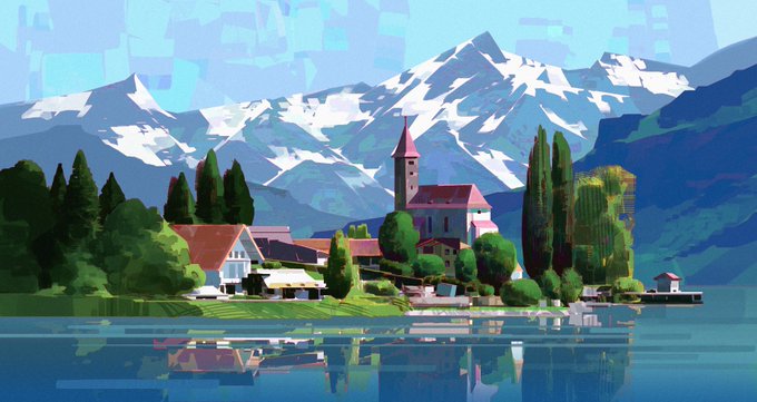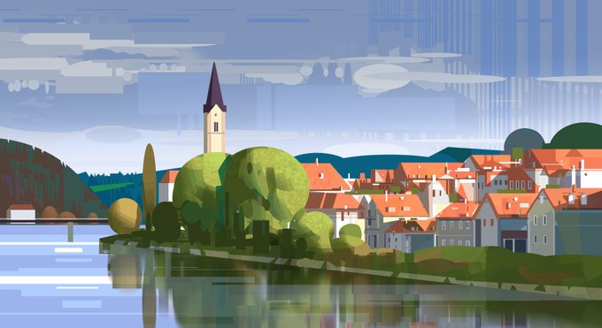 My piece for "In The Streets of Scandinavia (In The Style of Studio Ghibli)" 🌅🌄