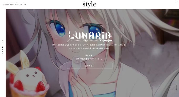 12/24発売のキネティックノベル「LUNARiA」や次回作「終のステラ」の記事も掲載中です。