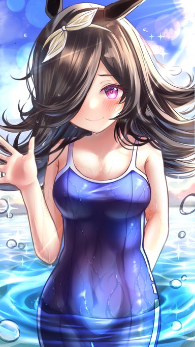 ライスと海〜〜!!🏖🏝 #ウマ娘 #ライスシャワー
