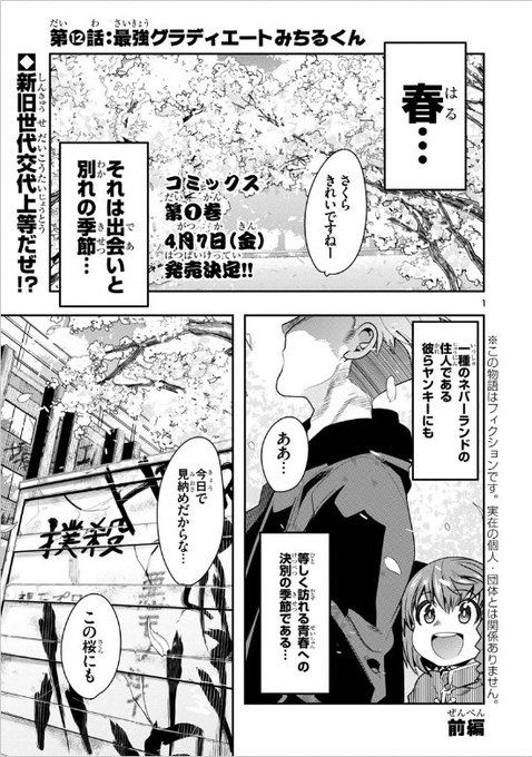 4月7日に一巻発売!https://t.co/xdpLkDfdrV 秋田書店チャンピオンクロス連載、グレートヤンキーみちるくん12話更新です!