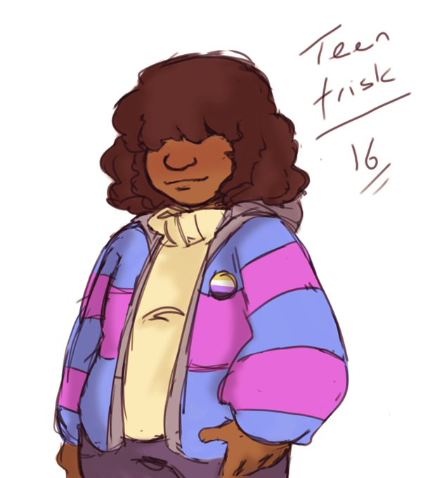 My sketchy interpretation of frisk in their teens :)