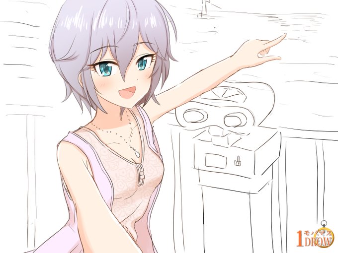 #モバマス版深夜の真剣お絵かき60分1本勝負 #デレステ6周年 #浅利七海 #赤城みりあ 完成ver。6周年まであと3日(1日)! 七海ちゃん、みりあちゃんとサメフォトスポットで記念撮影!