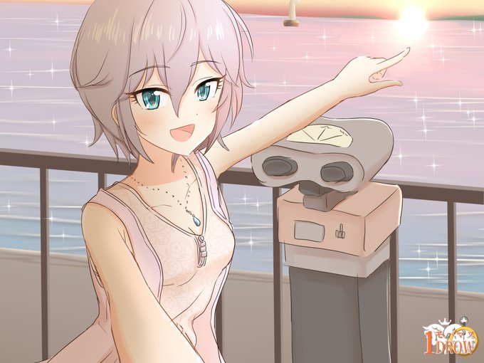 #モバマス版深夜の真剣お絵かき60分1本勝負 #アナスタシア 完成ver。海の夕暮れとアーニャちゃんです!
