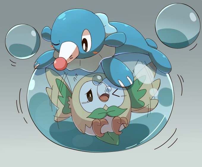 アシマリちゃんの水バルーンの中に閉じ込められたさ