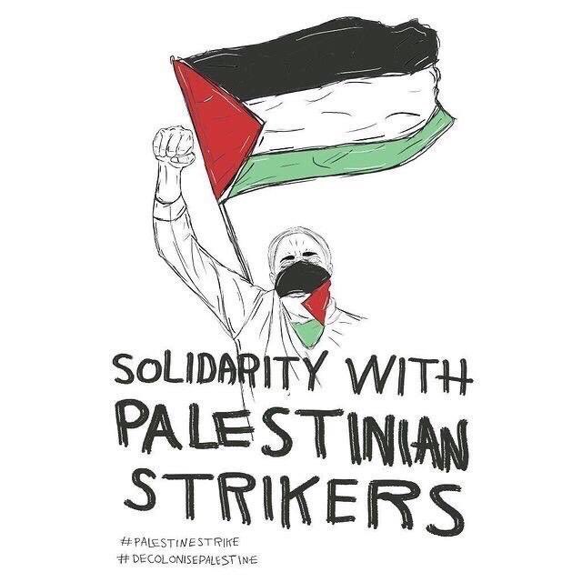 We stand with the people of Palestine as they carry out a historic general strike for the next 48 hours. We will continue to support the Palestinian popular uprising until the liberation of Palestinian land and its people. #PalestineOnStrike #اضراب_الكرامة #إضراب_فلسطين