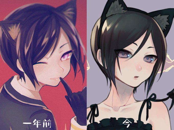 1年前と今の薬研くん並べてみてそんなに変化ないなって思ったけどどっちも猫耳で草生えた