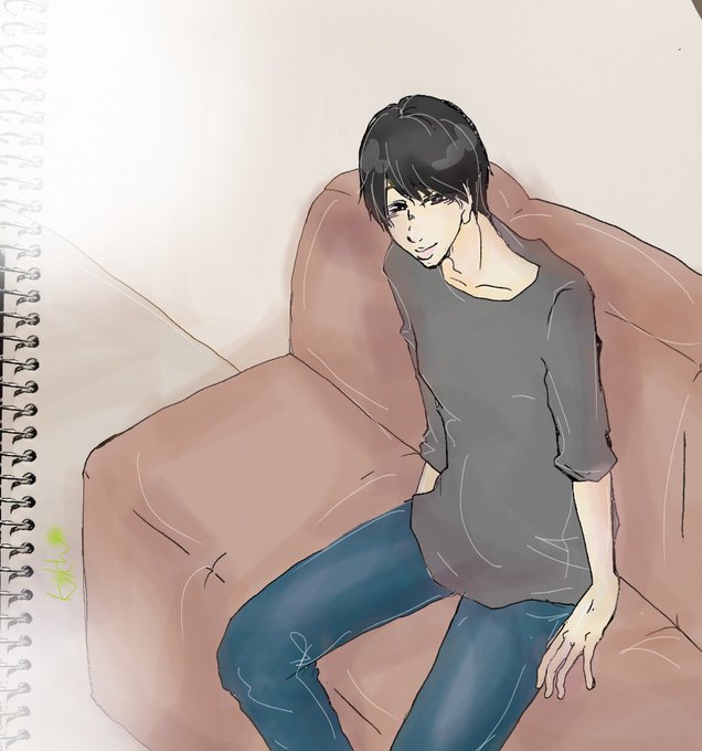 ソファーによこやまさんが座ってて「おかえり」って言ってくれたらいいなーって思ってたんですが、帰ってもいなかったのでとりいそぎ描きました。